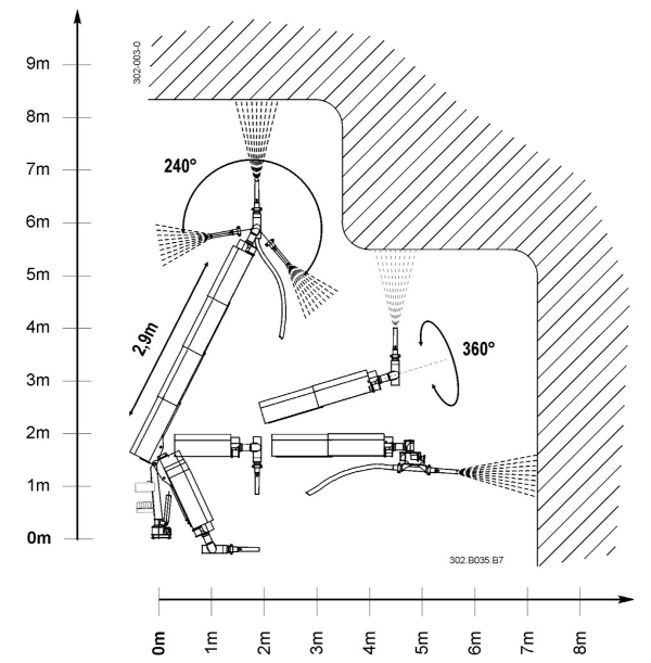 Телескопическая торкрет-стрела Aliva-302 является малогабаритным манипулятором, специально разработанным для облегчения ведения высокопроизводительного набрызга торкрет-бетона в стеснённых условиях горных производств и тоннелестроения. Манипулятор состоит из самой телескопической торкрет-стрелы Aliva®-302 с форсункой для набрызга бетона и гидравлической маслостанции с электрическим или пневматическим приводом. Телескопическая торкрет-стрела предназначена для монтажа на какое-либо технологическое шасси и эксплуатируется с внешним насосом для подачи торкрет-бетона типа Aliva или Sika-PM. Привод торкрет-стрелы может также осуществляться от гидравлической системы шасси, на которое монтируется стрела.