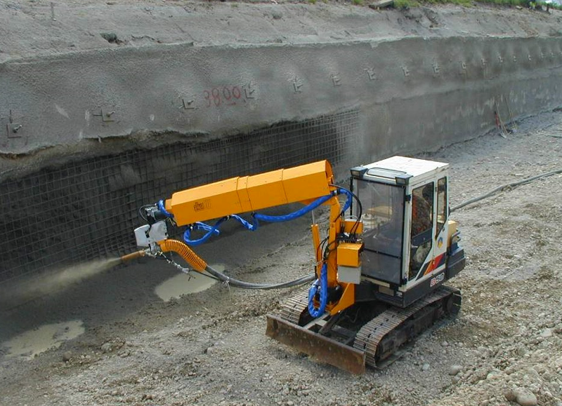 Телескопическая торкрет-стрела предназначена для монтажа на какое-либо технологическое шасси и эксплуатируется с внешним насосом для подачи торкрет-бетона типа Aliva или Sika-PM. Привод торкрет-стрелы может также осуществляться от гидравлической системы шасси, на которое монтируется стрела